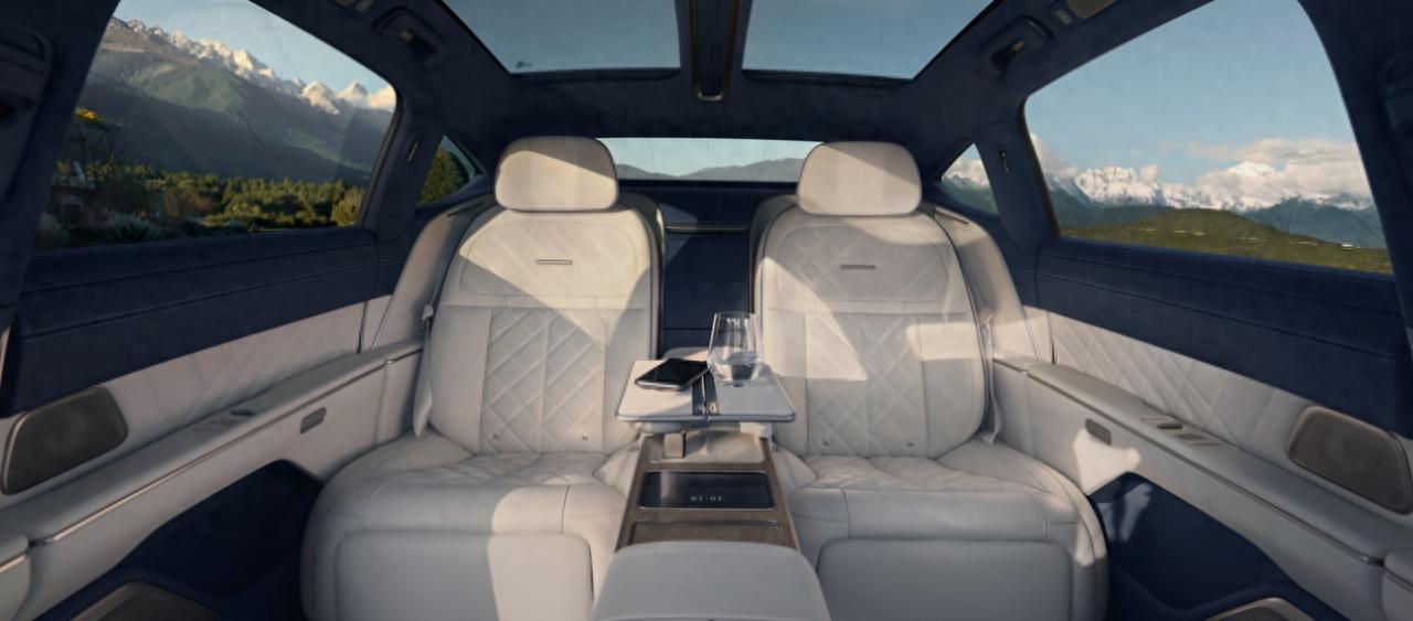 得益于線控轉向的技術優勢,方向盤回收行程達到 153 毫米,主駕座椅還能充分向前折疊,這可不得了,直接讓 ET9 擁有了同級唯一的后排雙側尊享模式。不管你是大長腿還是喜歡 “葛優躺”,都能找到最舒適的姿勢,每一位乘客都能享受寬綽得體的頭等艙般尊享體驗,空間大到可以隨意舒展,再也不用憋屈地蜷縮在座位上。