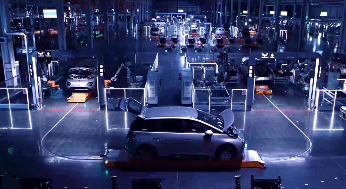 ▲新能源汽車從五菱精益智造工廠流水線上源源不斷下線。