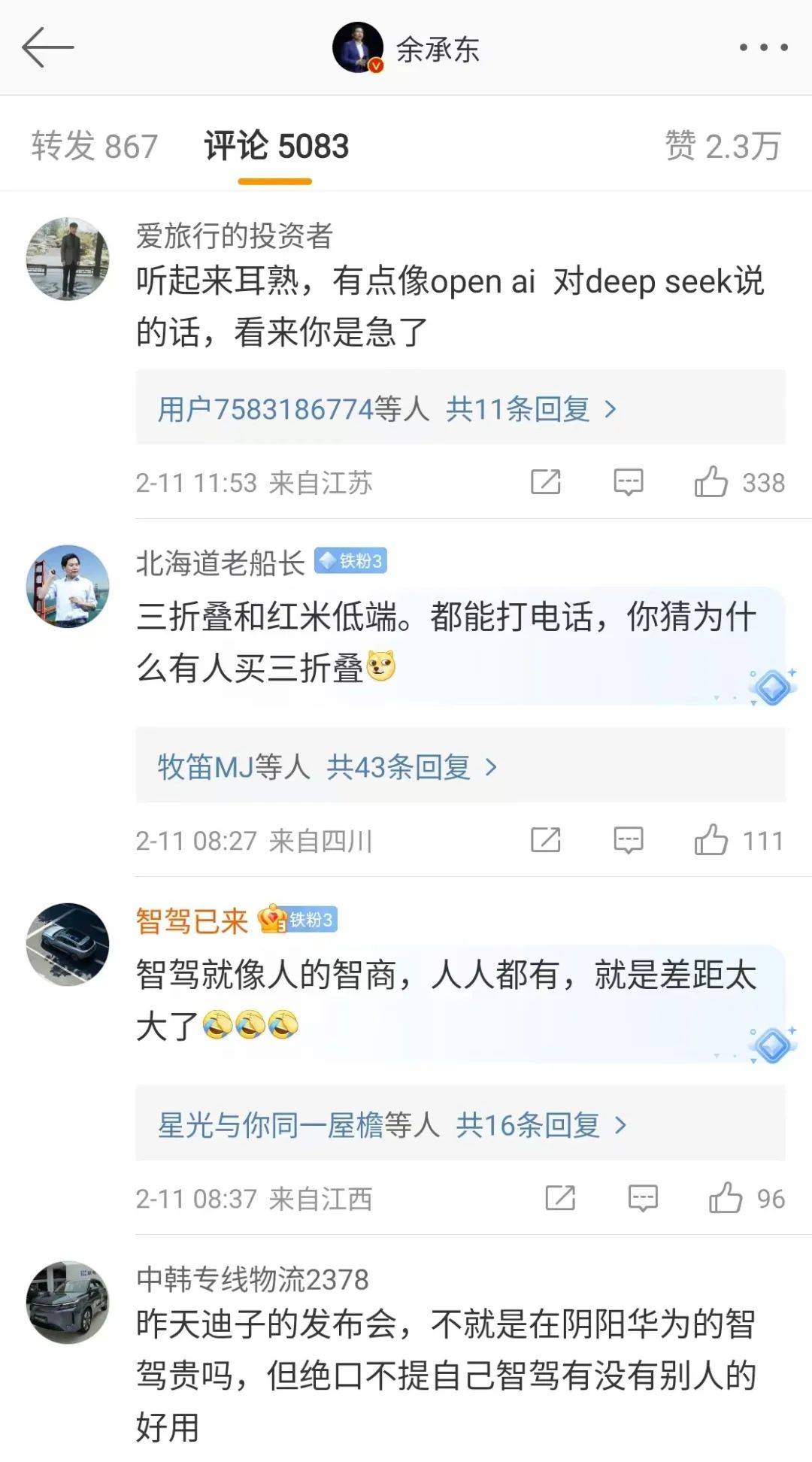 但吃瓜群眾最熱衷于討論的,還是余承東的反應。