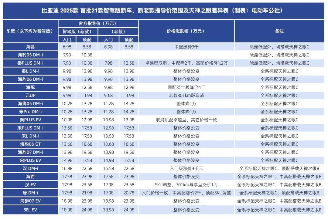 從產品角度分析,比亞迪所謂的未來全系車型將標配“高階智駕”,對行業影響最大的其實是搭載天神之眼C的入門級車型。
