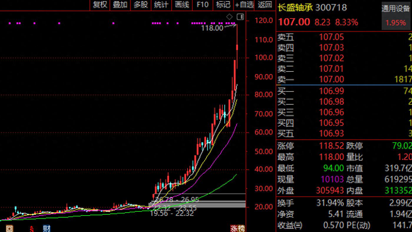 作為“宇樹概念股”的標桿,長盛軸承自2024年12月24日至2025年2月10日,股價從18.60元飆升至107元,累計漲幅達475%,市值突破300億元。其暴漲邏輯源于其為宇樹人形機器人供應關節自潤滑軸承,盡管該業務收入占比不足1%。