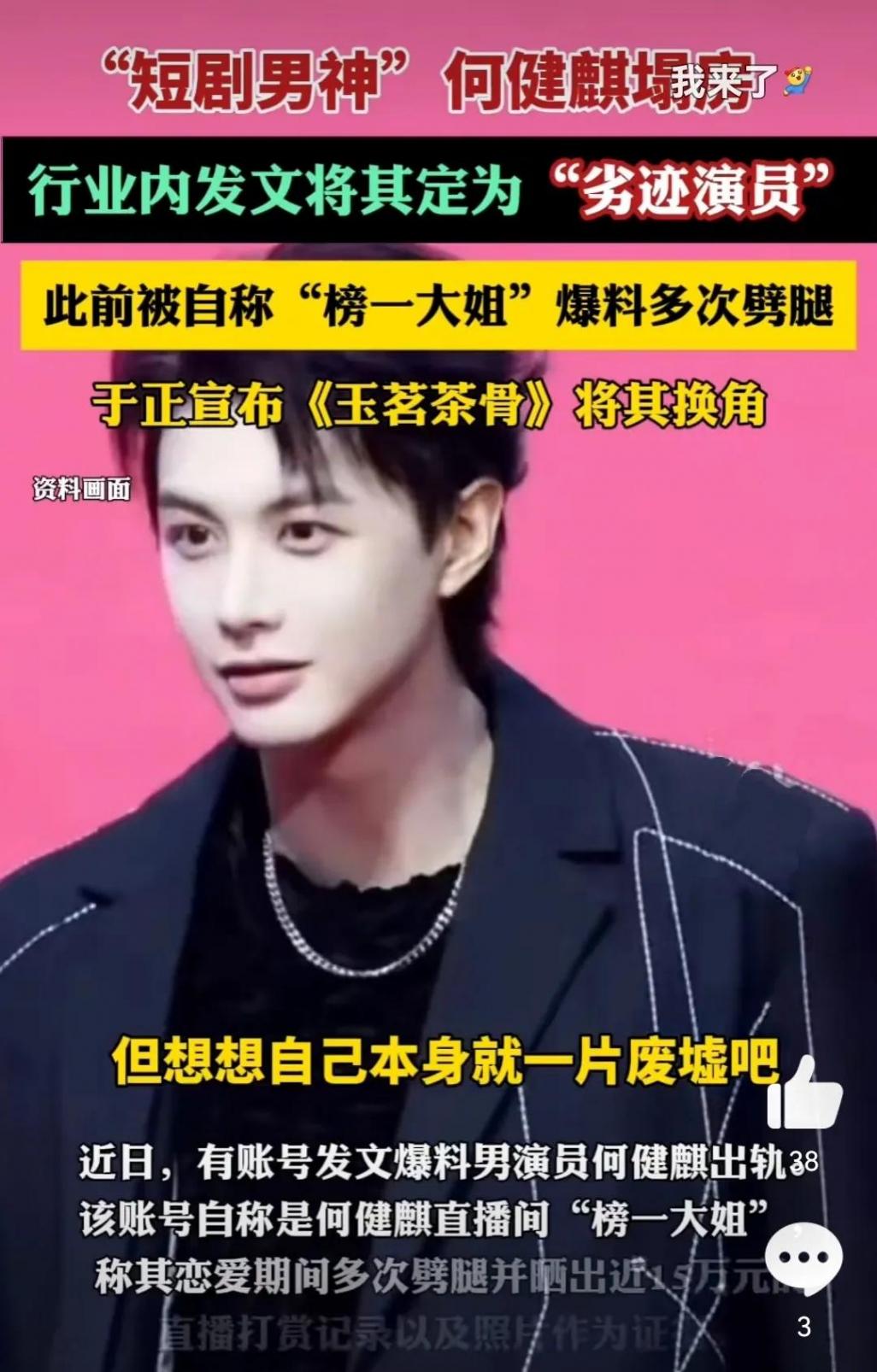 近日,短劇界掀起了一場驚濤駭浪,當紅頂流演員何健麒被中國電視劇制作產(chǎn)業(yè)協(xié)會青年工作委員會直接定性為“微短劇劣跡演員”。這一消息如同一顆重磅炸彈,瞬間在全網(wǎng)炸開了鍋,曾經(jīng)在短劇熒幕上叱咤風云、風光無限的他,如今卻淪為眾人唾棄的對象,背后究竟有著怎樣不可告人的隱情?
