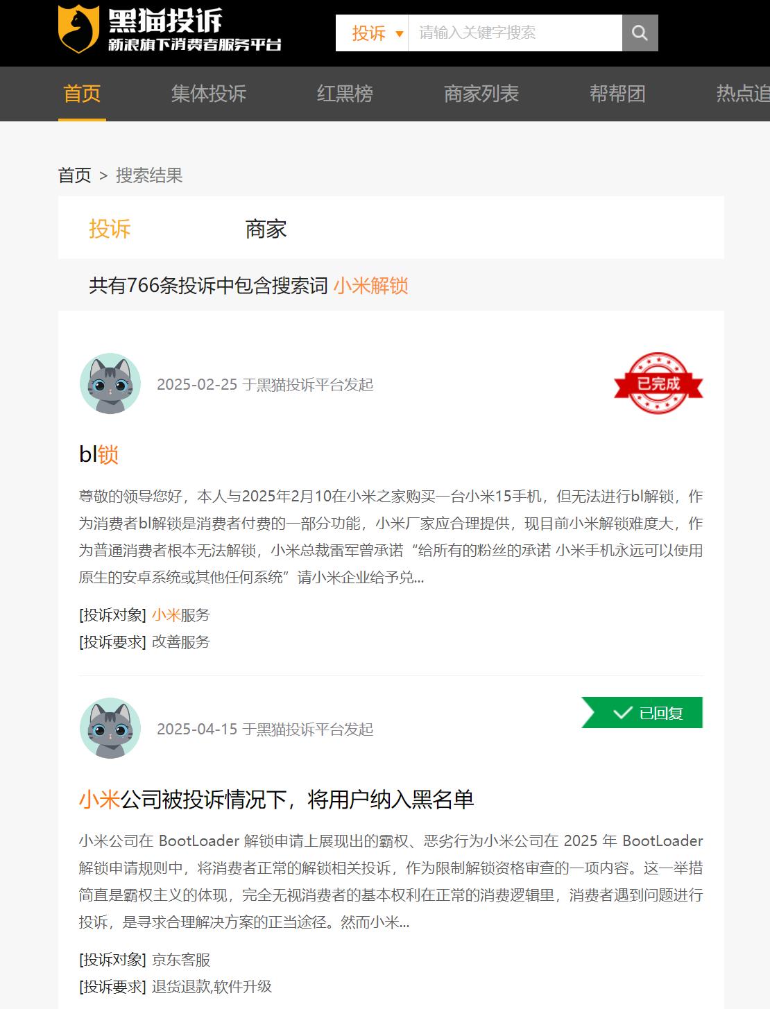 特別是其中的“是否有與 BootLoader 解鎖相關的投訴”一條,就是說如果你在小米社區有發過吐槽、或者在第三方消費投訴平臺比如黑貓有過對小米 BL 解鎖的投訴記錄,甚至是在微博、B站和知乎等有過相關吐槽發言,都可能因此被拉進黑名單,導致之后申請解鎖受影響。