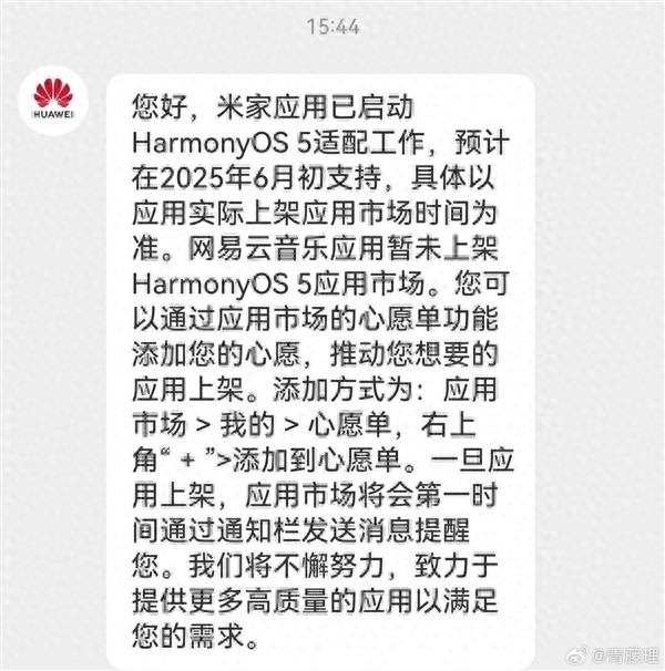 不過現在希望來了,今天一份網友咨詢華為終端客服的截圖曝光,客服明確表示米家應用已經啟動HarmonyOS 5系統適配工作,預計6月初支持。