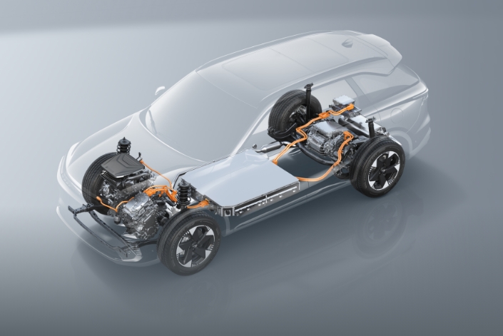 搭載1.5L混動發動機+前后雙電機,支持純電、增程、插混三種模式,CLTC純電續航最高165km。WLTC饋電油耗4.2L/100km,綜合功率238kW,零百加速6秒級。
