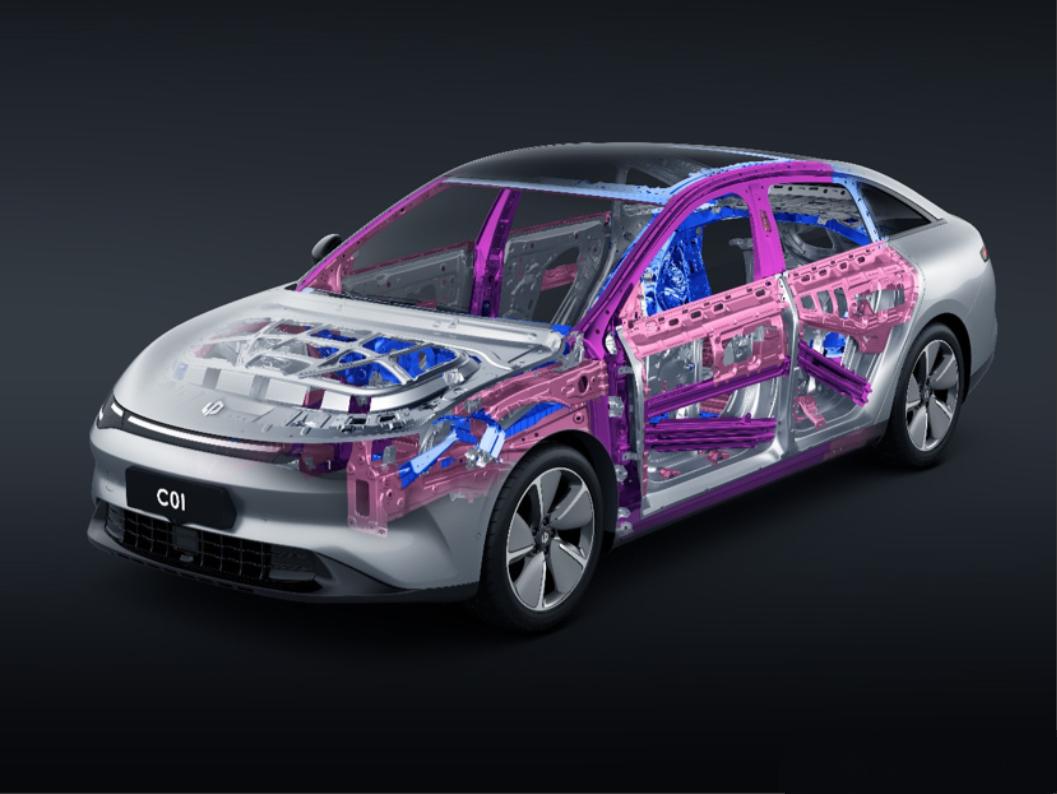 車身結(jié)構(gòu)方面零跑C01更“硬”,A柱、B柱、C柱以及上邊梁和下邊梁幾乎全部采用了1600MPa的S級超高強度鋼材。不夸張地說,零跑C01車身架構(gòu)S級超高強度鋼材的應(yīng)用比例比一直以車身剛性標榜的德系品牌還高。再加上前后鋁型材高剛性嵌入式防撞鋼梁,進一步提升零跑C01的車身剛性,保護性自然不必多說。