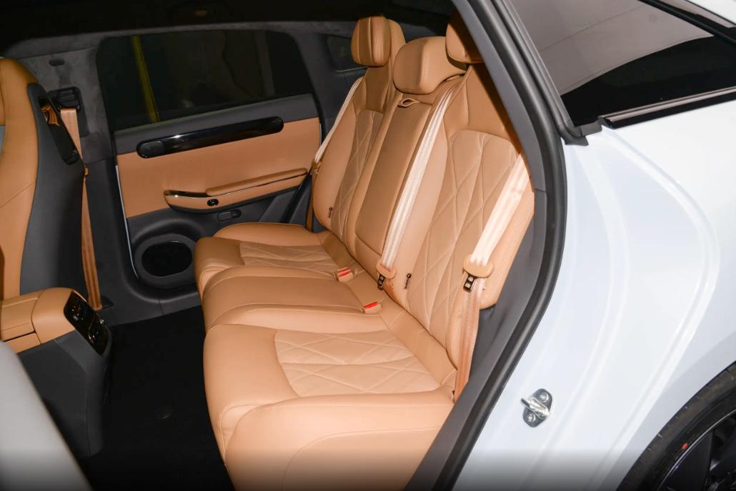 車輛側(cè)面采用溜背造型,接近一廂車的概念,造型新穎時尚,得益于這樣的設(shè)計整車的風阻系數(shù)可以僅為0.226,無邊框車門和隱藏式門把手為整車設(shè)計增色不少,該車還配備了五幅式低風阻輪圈。車輛的尾部配備了貫穿式尾燈,造型很科幻,辨識度比較高,并且尾部還有小鴨尾式擾流板,為整車增添了一絲運動氣息。