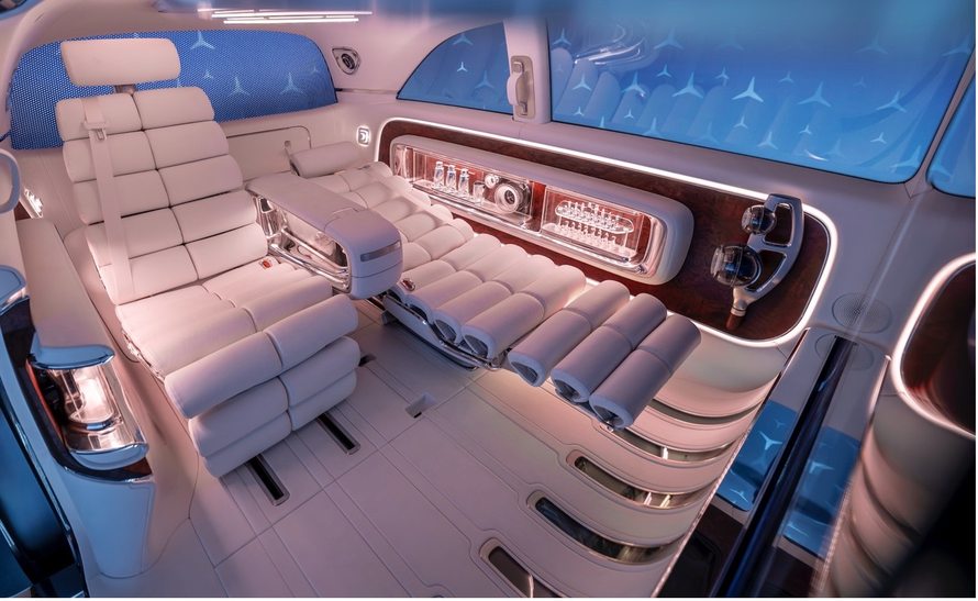 基于此,奔馳在Vision V概念車上展現(xiàn)了其對于科技感和豪華感的精準(zhǔn)掌握,后座的頭等艙級獨(dú)立座椅,具備4種模式,滿足出行的各種乘坐需求,但造型卻沒有采用時下流行的厚重座椅樣式,而是采用了優(yōu)雅經(jīng)典的休閑躺椅樣式,Nappa皮飾搭配白色絲光綢緞以及胡桃木飾件,讓人仿佛置身于夏日沙灘。