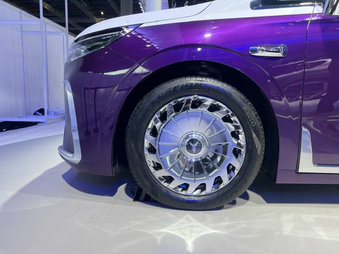 20英寸“星漩”輪轂在燈光下星光旋轉(zhuǎn),銑切工藝精致利落,中心“嵐圖汽車”浮標(biāo)靈動(dòng)懸浮,始終處于車標(biāo)正向。