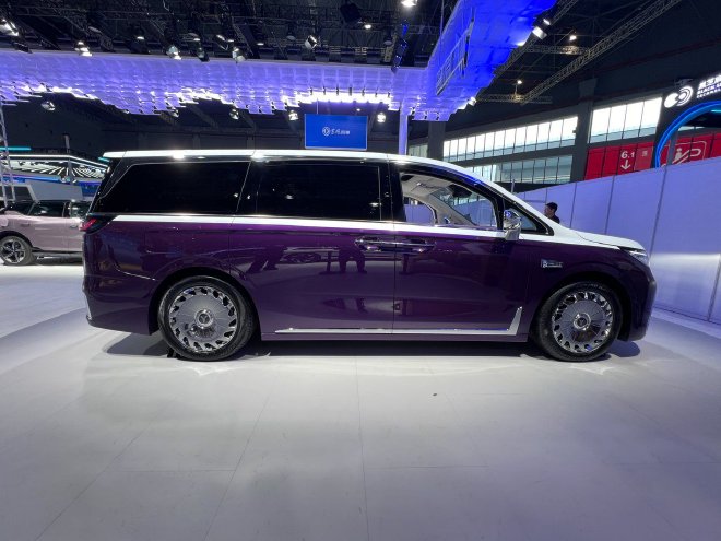 嵐圖夢(mèng)想家·山河整體造型與車系沒有很大區(qū)別,只有車身采用“皓月紫云”雙色車身顏色,低調(diào)而深邃,仿佛暮色山巔云嵐掠影。