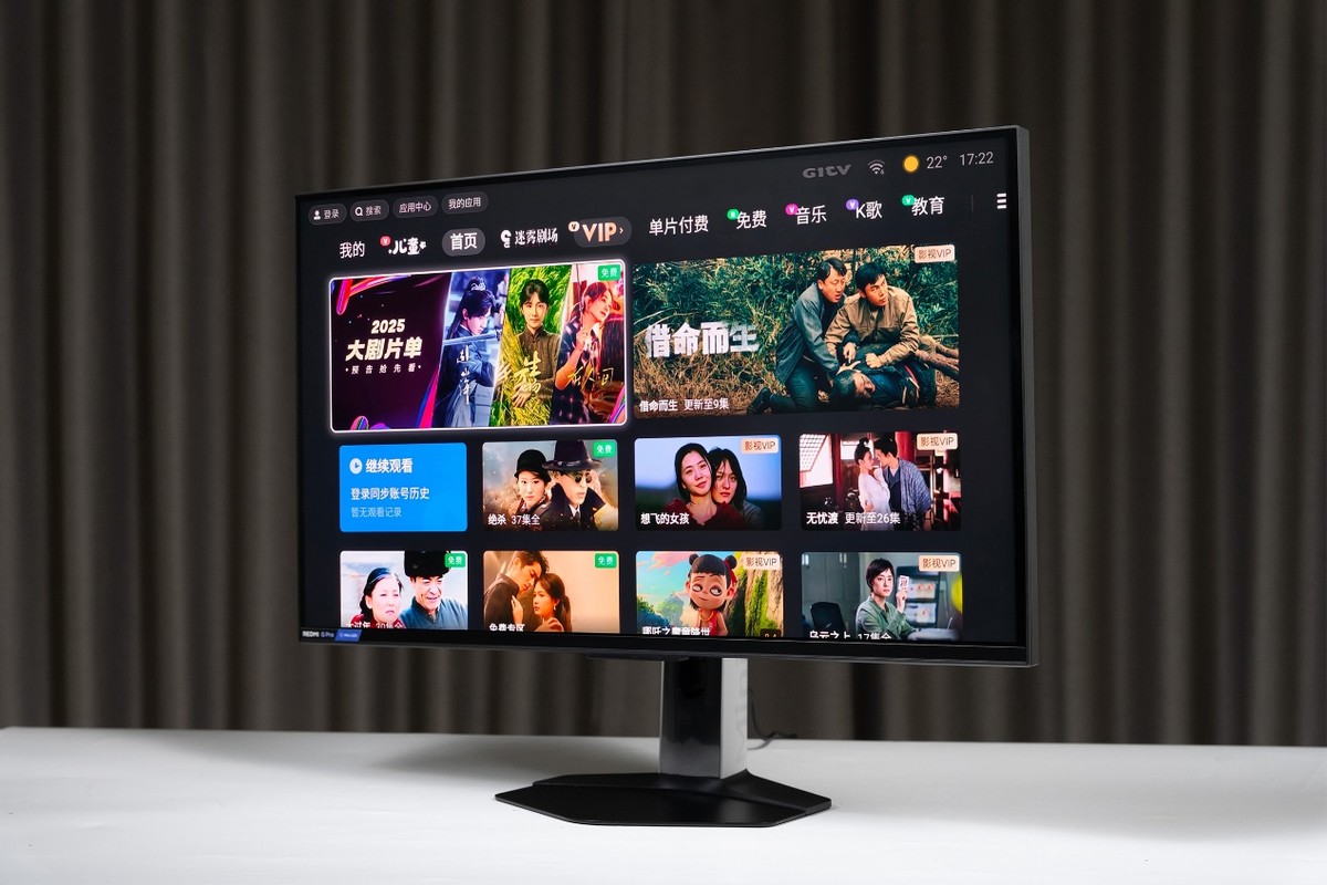 接下來(lái)就是有點(diǎn)離譜的部分了,紅米R(shí)EDMI G Pro 27U還內(nèi)置了四核心A73芯片,搭載了定制的澎湃OS系統(tǒng),以及內(nèi)置了大量的影視資源。顯示器自帶5W×2音響,配合遙控器使用的話,這就是一臺(tái)電視,還有2個(gè)USB接口能連接優(yōu)盤或者其他設(shè)備。