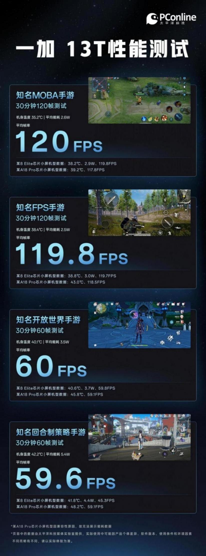 無論是面對(duì)MOBA游戲還是開放世界手游,一加 13T都展現(xiàn)出了驚人的實(shí)力,在實(shí)現(xiàn)穩(wěn)定超高幀率的同時(shí),功耗表現(xiàn)與溫控表現(xiàn)也都處于行業(yè)頂級(jí)水準(zhǔn)。