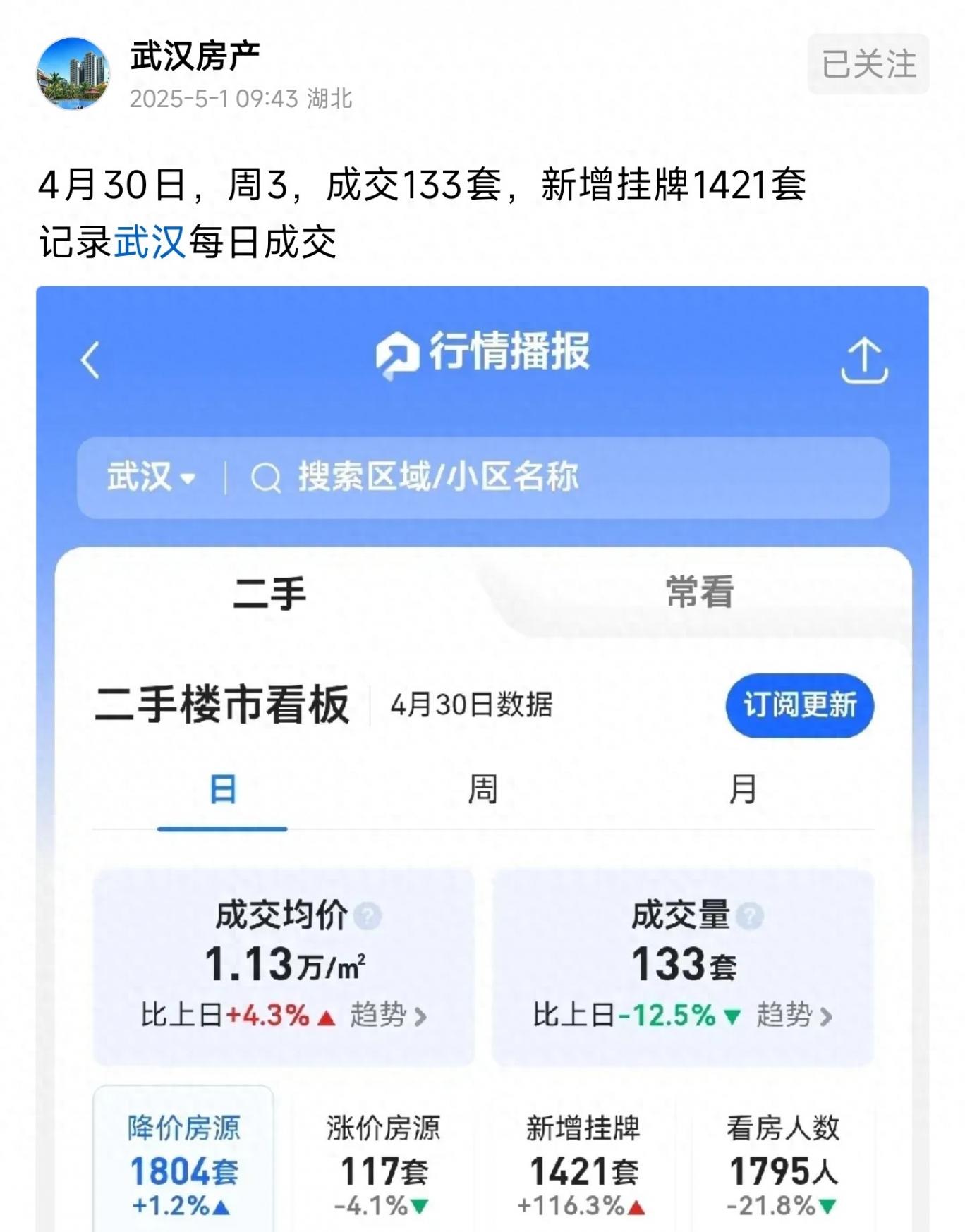 樓市新機遇,武漢太燃了,二手房成交均價1.13萬元,環比上漲4.3%