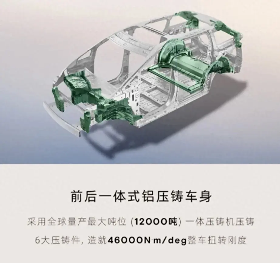 ① X9有超“剛”車身:全球唯一量產,前后一體鋁壓鑄MPV,46000N·m/deg 整車扭轉剛度。12000T超大后地板鑄造壓力,全球量產最大噸位壓鑄機。