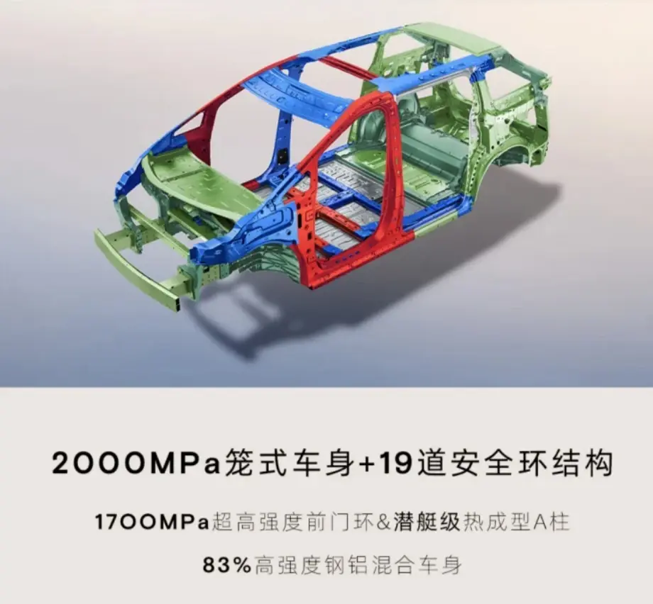 ②X9有 “含金量”更足的車身:83%高強度鋼鋁混合車身、2000Mpa籠式車身、1700Mpa超高強度的前門環、潛艇級A柱。