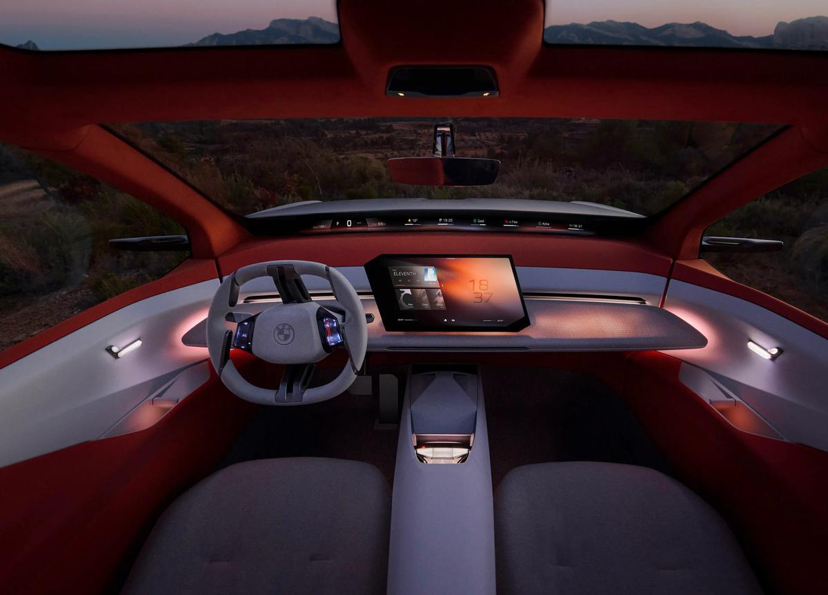 根據目前主流媒體的預測,全新寶馬3系對于座艙內也將進行較大幅度的改變,設計思路預計會參考X系列概念車的風格,中控臺整體采用了開放式的設計,臺面通過階梯式的結構和深淺組合的面料包覆形成了清晰的層次感。除了設計風格的變化之外,車內的人機交互主體也有變化,主要的顯示界面包含了臺面前端的帶魚屏以及中央的懸浮中控屏,前后錯落的布局也預示著兩個界面將承擔不同的職能。方向盤換為了全新的四輻式平底設計,而中央通道區域的設計也將更為簡約,主要滿足一些實用性需求。
