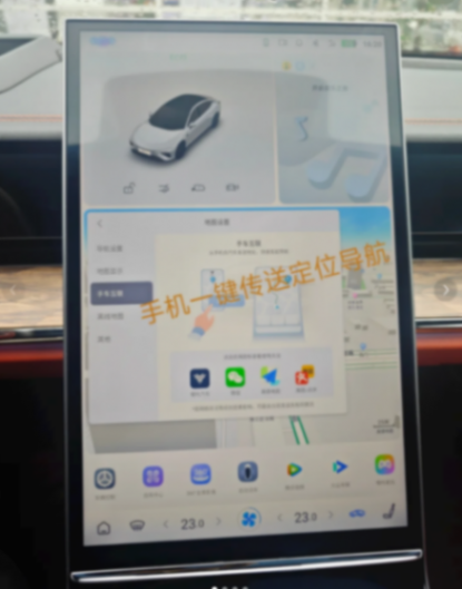 智能化方面,哪吒S中間這塊屏幕的可玩性還是比較高的,手車互聯功能就比較實用,支持手機一鍵傳動定位導航功能。平時如果遇到朋友聚餐的情況,朋友將飯店地址發送到社交軟件,很多車主上車后要么直接開啟手機導航、要么開啟車機導航,然后再次輸入目的地地址,這兩種方式都不太方便。在哪吒S進行OTA升級后,手車互聯中的功能就能實現一鍵將手機導航傳送到車機,省去了中間的操作步驟。
