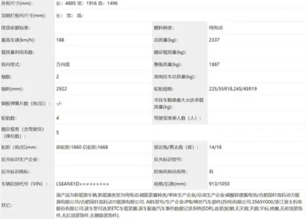 動力這塊兒,申報了兩個版本,最大功率分別是120千瓦和210千瓦。電池用的是合肥國軒高科的磷酸鐵鋰電池組。