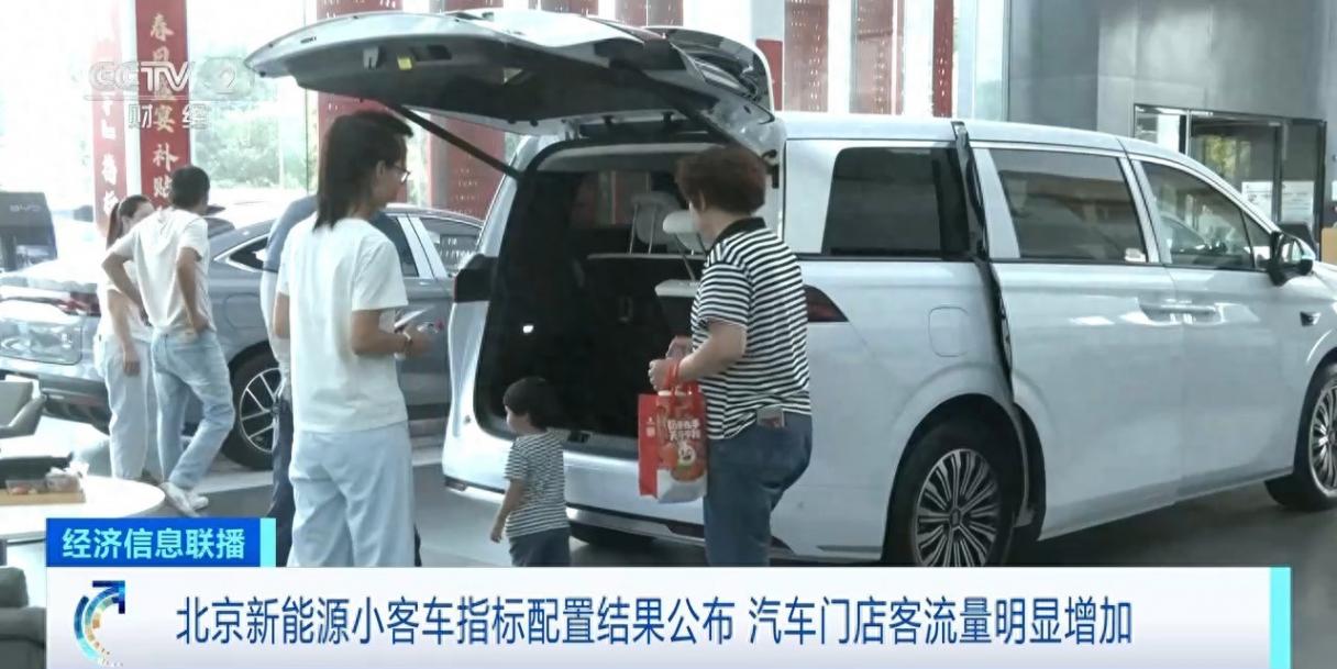 在北京一家汽車門店記者看到,雖然是工作日,從下午三點到四點的一個小時的時間里,前來咨詢購車的消費者就有8組,其中6組都是首次申請到新能源小客車指標的家庭。