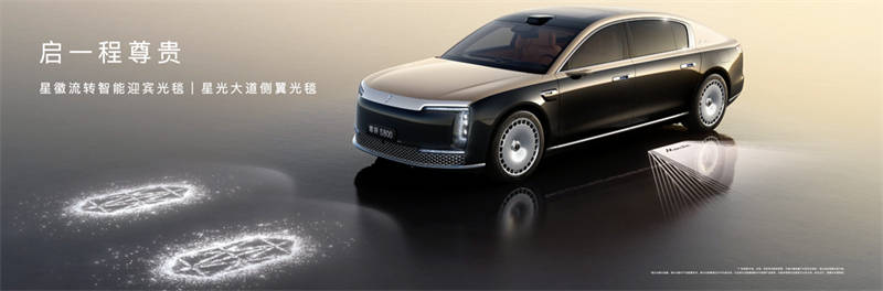 5480×2000×1542mm的車身尺寸、3370mm的軸距、星河前大燈、星云畫卷尾燈、自然流線車身線條、雙色車身、大視野純平側窗、21英寸25孔日耀輪轂等設計元素營造出大氣恢弘的氣勢,配得上時代旗艦的定位。