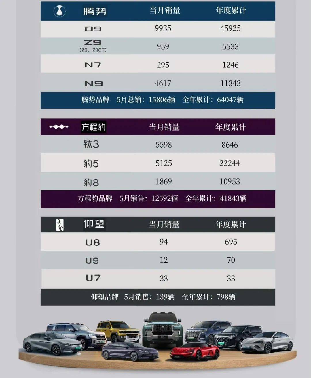 至于仰望,5月共售出新車139輛,包含U8的94輛、U9的12輛、U7的33輛??紤]到均價(jià),也算能夠接受。