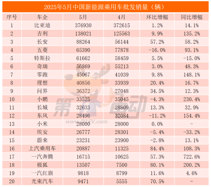 5月新能源車銷量TOP20:吉利14萬輛再創新高,特斯拉、埃安同比大降