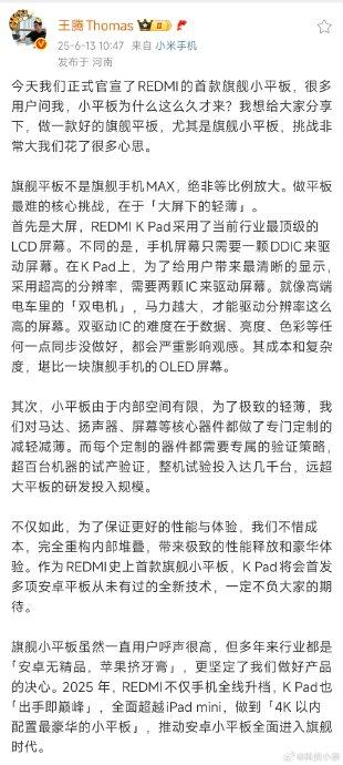 王騰稱K Pad將全面超越iPad mini,首發多項新技術
