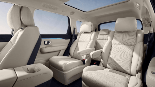 這臺車的空間表現,用“降維打擊”形容毫不為過。5米車長、3米軸距的“巨無霸”身材,讓6座布局不再是“應急湊合”。二排獨立座椅間距堪比豪華MPV,三排也能輕松容納成年人;即使滿載出行,后備廂仍能吞下3個28寸行李箱,露營裝備、嬰兒車、折疊自行車統統不在話下。對于二胎家庭而言,這哪里是車,分明是能移動的“家庭生活艙”。