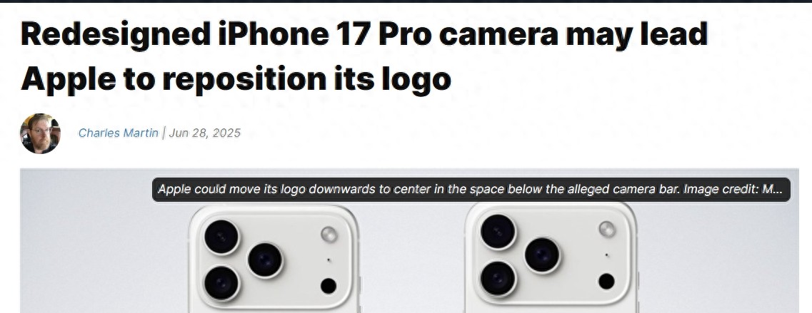 6月29日消息,據外媒報道,蘋果將改變 iPhone 17 Pro 背面品牌logo的位置,這是其六年來首次進行此類調整。