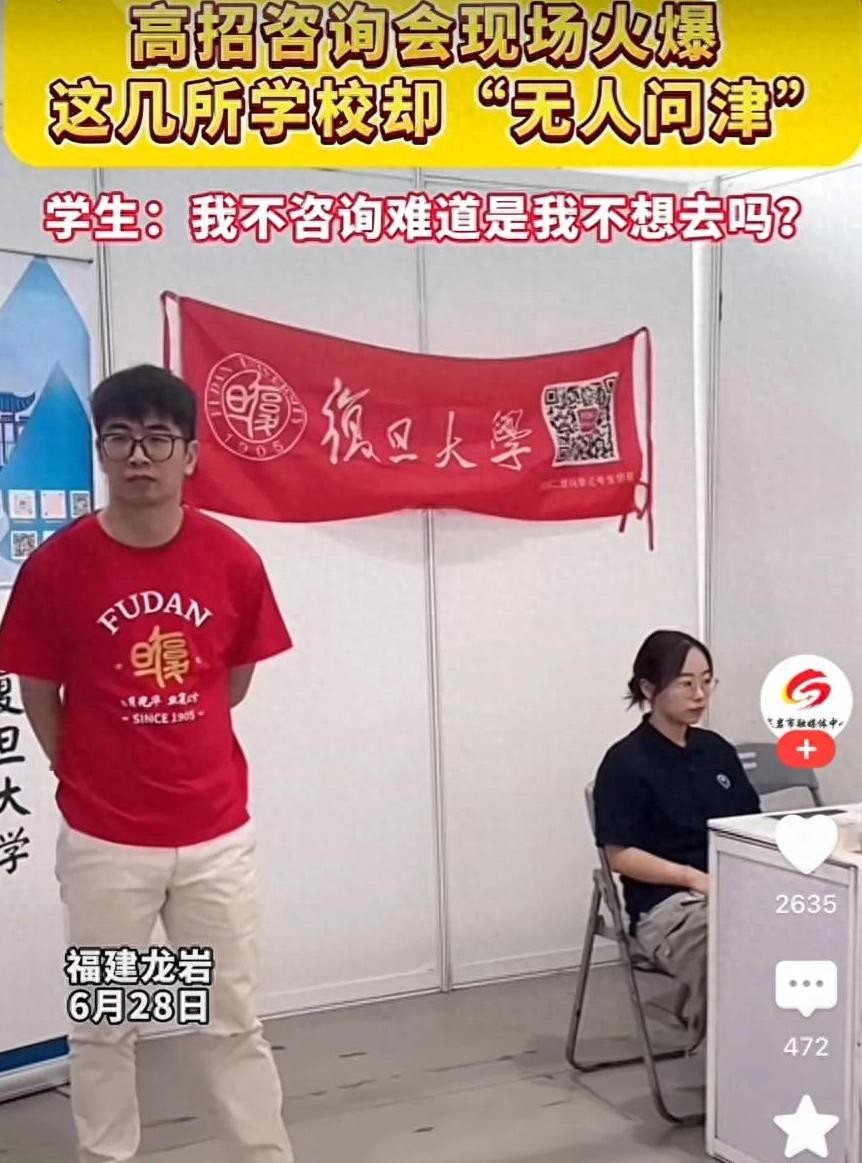 熱鬧的高招會現場,有個角落特別扎眼:復旦大學、南京大學、華東師大這些響當當的名校,攤位前空蕩蕩,連個人影都沒有。學生們人擠人,家長堆著問,偏偏這幾家攤子冷清得嚇人。招生老師干坐著,翻翻資料、看看手機,時不時朝人堆里張望,那神情,像是在等人光顧的小店老板。