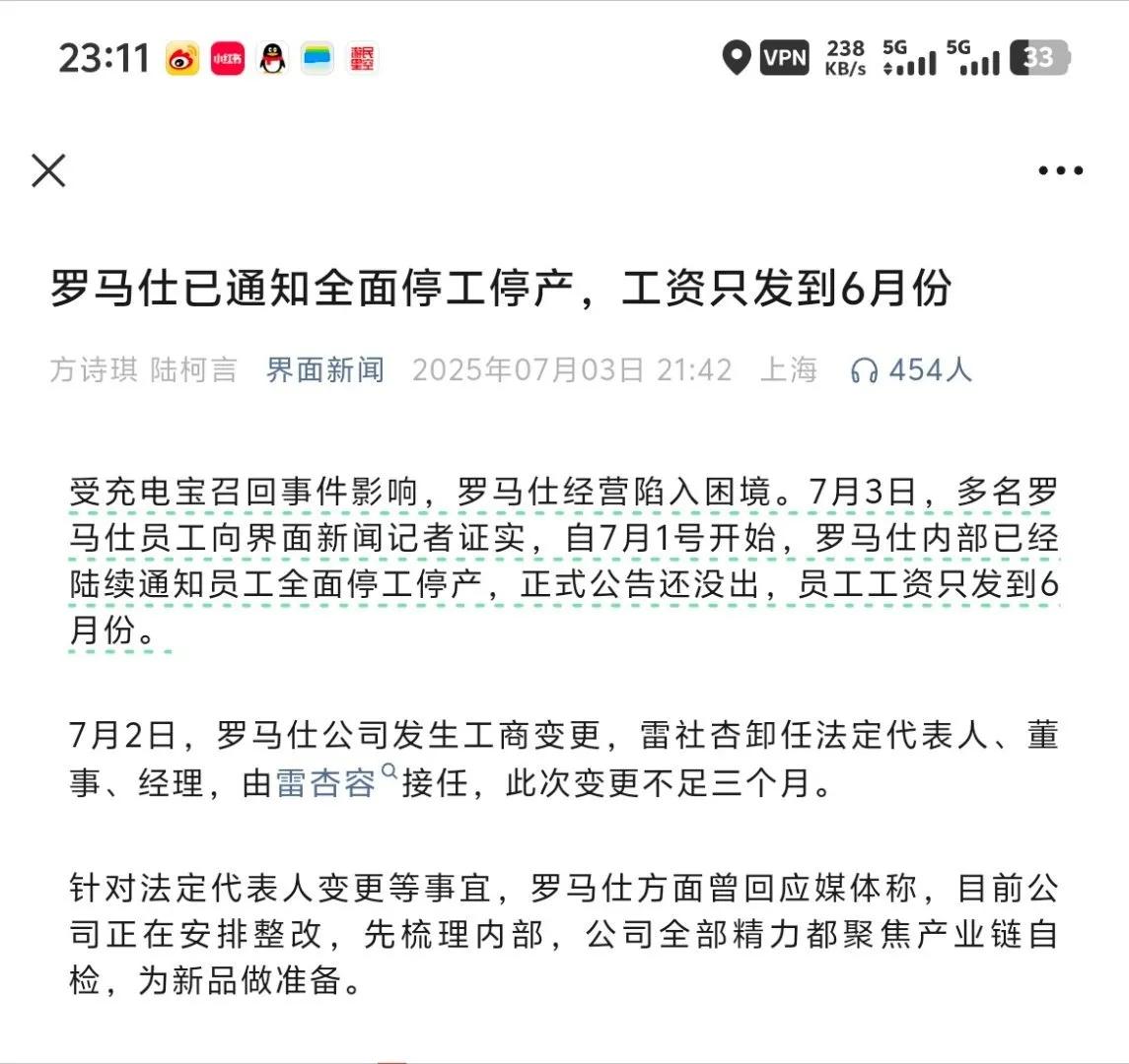羅馬仕倒閉?真的假的,羅馬仕這個牌子做充電寶有十來年了吧,我上學的時候就在用。電商平臺銷量都是100w+評價,幾十萬+評價的水平,怎么都在傳倒閉?