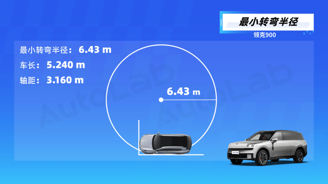 通過我們的實測,領克900的轉彎半徑為6.43米。