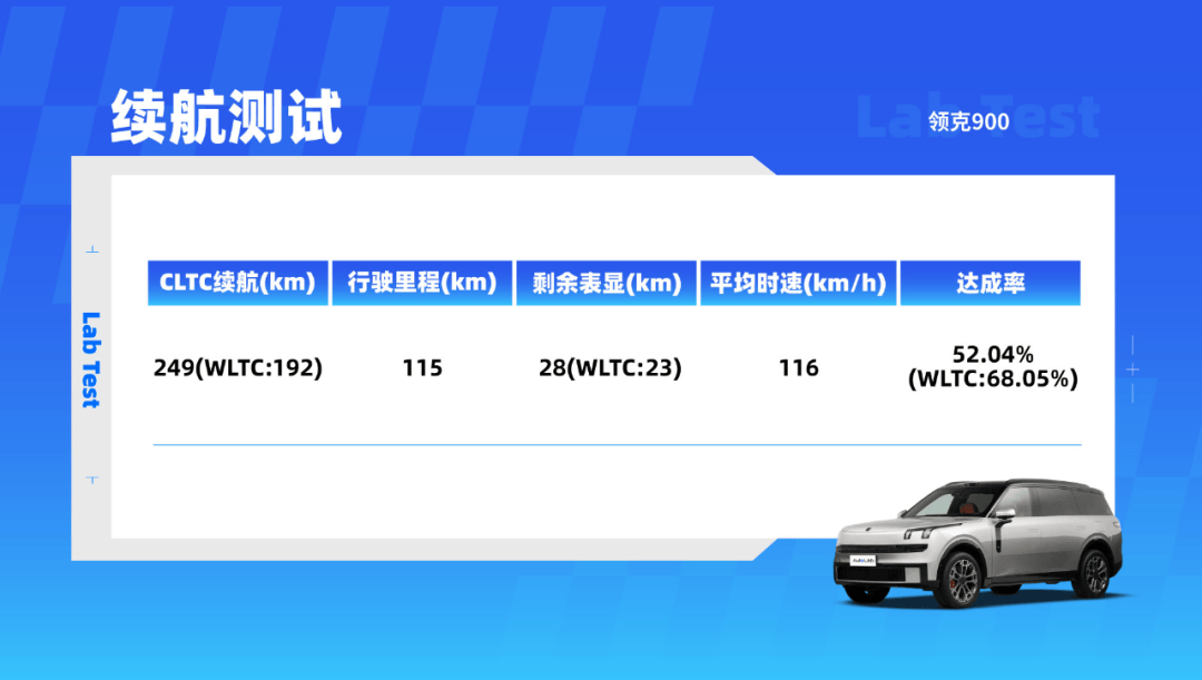 通過計算,領克900的CLTC續航達成率為52.04%,WLTC的續航達成率為68.05%。