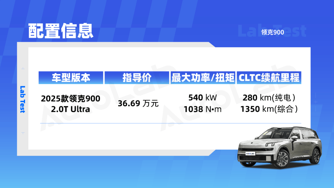 正式開始前,簡單介紹一下參加測試的車型。2025款領克900 2.0T Ultra版,官方指導價36.69萬元。