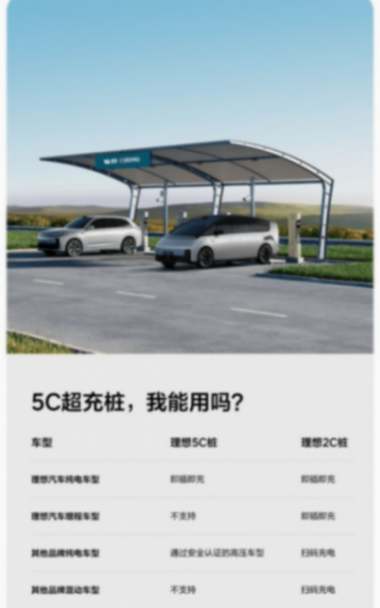此外,小鵬汽車的充電樁也同樣面向全體用戶開放。理想汽車與特斯拉等則選擇部分開放的形式,理想汽車開放2C與4C充電樁,5C超充充電樁理論上可供其他支持高壓協議的純電汽車車主使用,但實際上目前只支持理想純電車型使用。