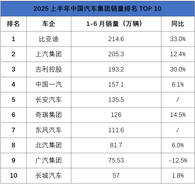 吉利汽車控股有限公司的表現同樣亮眼:上半年銷售140.9萬輛,同比增長47%;新能源銷量72.5萬輛,同比上漲126%?;谶@一強勁勢頭,吉利汽車將全年銷量目標從271萬輛上調至300萬輛,成為2025年首個宣布上調年度目標的中國車企。