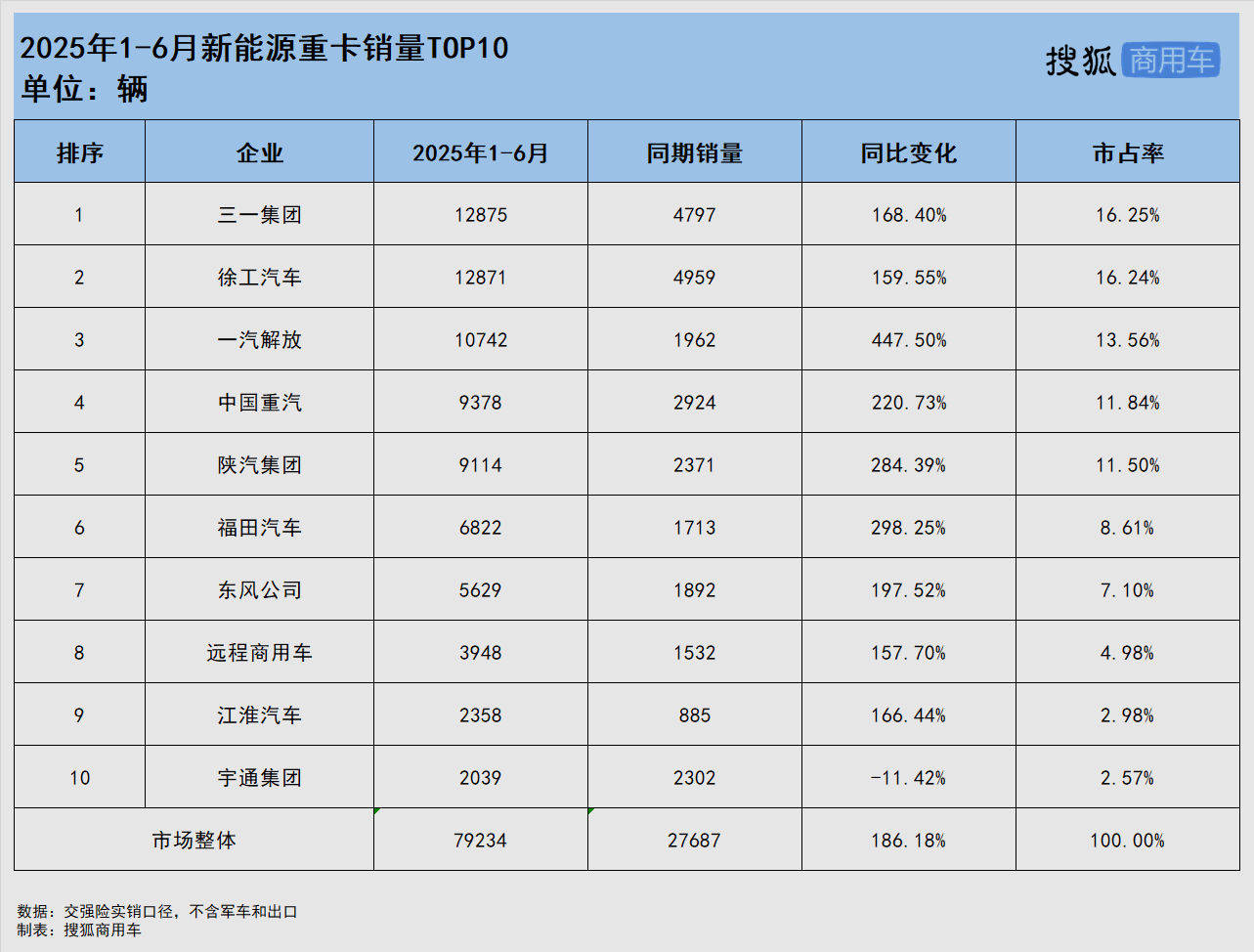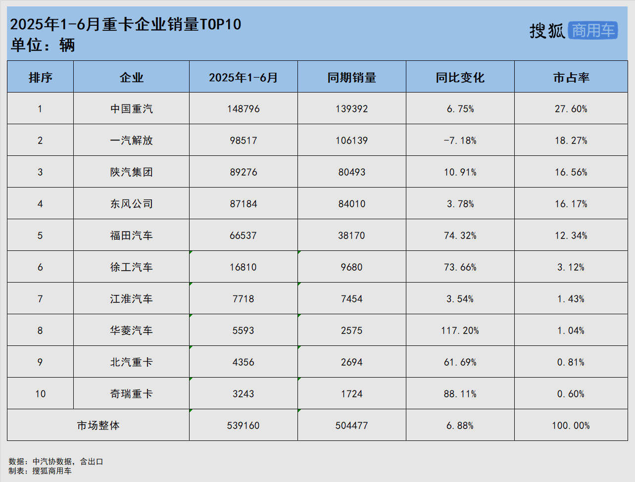 重汽穩(wěn)居行業(yè)第一 東風(fēng)緊跟陜汽 華菱翻番增長(zhǎng)