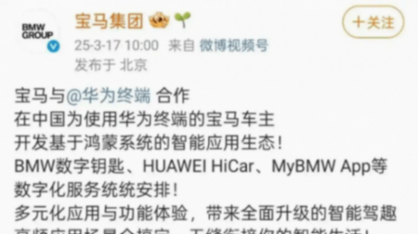 但是這里就有一個(gè)問題,在今年3月,寶馬和華為簽署了合作協(xié)議,涉及的領(lǐng)域主要是鴻蒙生態(tài),包含了數(shù)字鑰匙、HiCar系統(tǒng)和My BMW APP,也就說,和華為的合作主要還是在智能座艙領(lǐng)域!而華為擁有在國(guó)內(nèi)絕對(duì)意義上一線陣容的智能駕駛輔助能力,這種能力在國(guó)內(nèi)新能源汽車和智能汽車領(lǐng)域,基本上已經(jīng)形成了行業(yè)共識(shí),國(guó)內(nèi)很多車企都“采購(gòu)”了華為智駕系統(tǒng)。
