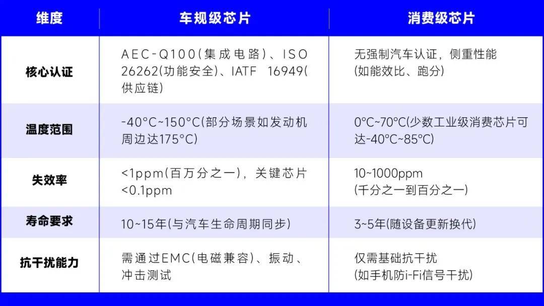 消費(fèi)級(jí)芯片和車規(guī)級(jí)芯片的區(qū)別,終于有人說清楚了