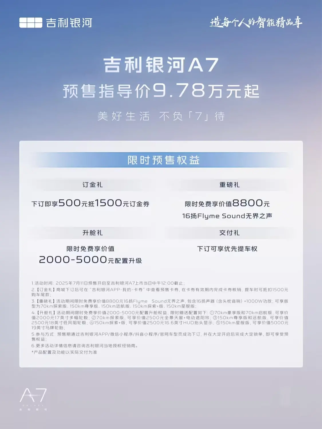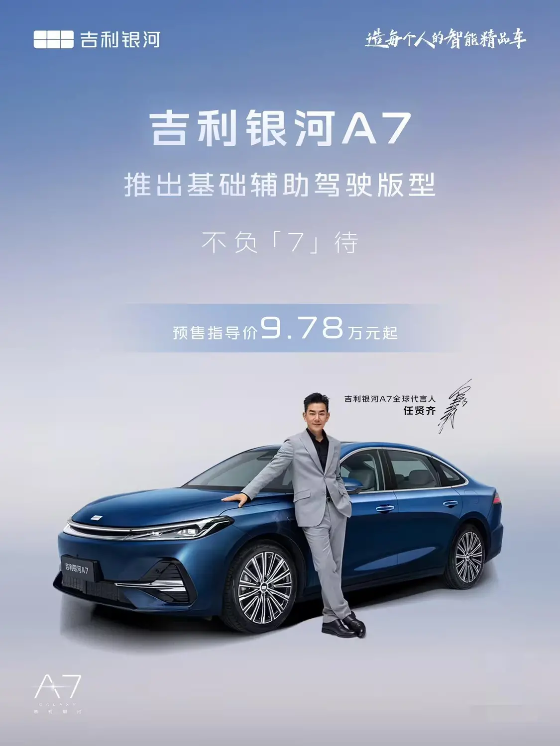 吉利全新中型轎車銀河A7加推基礎輔助駕駛版,預售價下探至9.78萬元起