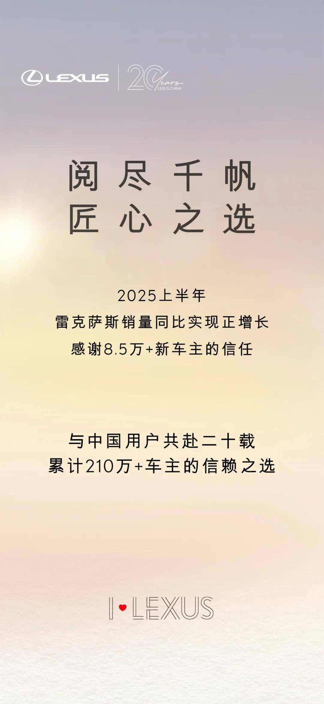 今年是雷克薩斯進入中國市場的20周年。雷克薩斯憑借與眾不同的進口身份、匠心品質形象,已經贏得超210萬中國消費者的青睞。即使在競爭激烈的上半年,雷克薩斯在華銷售超8.5萬輛,成為唯一保持同比正增長的進口豪華車品牌。眼下,雷克薩斯新能源項目已經開工,能否進一步提升雷克薩斯在中國市場的競爭力,獲得更多市場份額,有待市場檢驗。