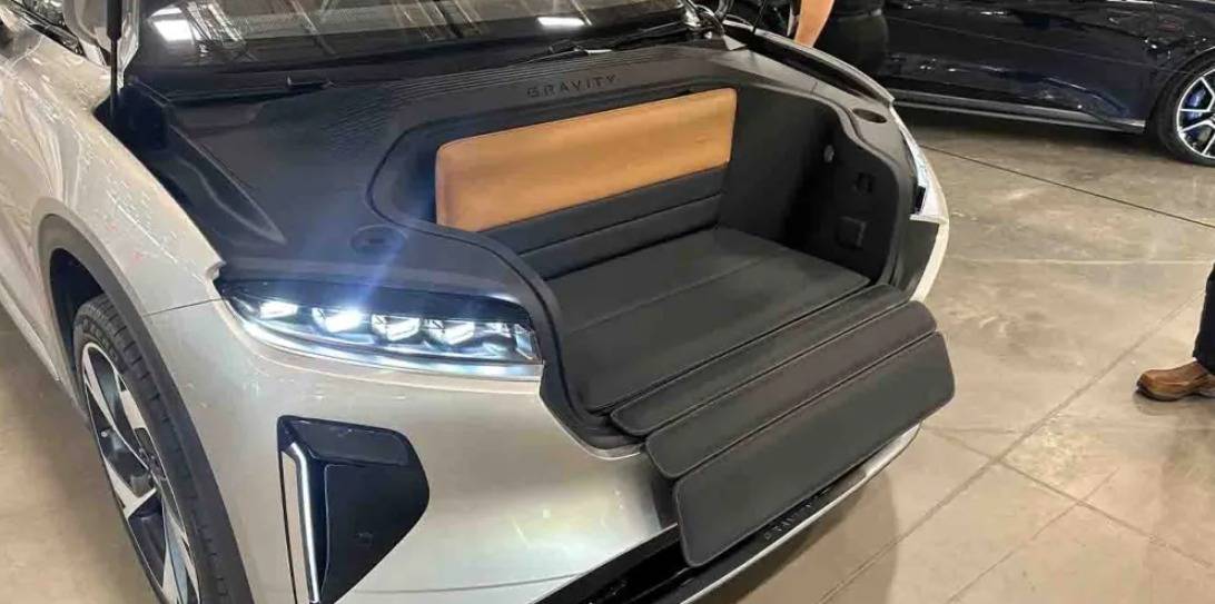除了樂道L90,還有一些車型也采用了大前備箱,比如福特F-150 Lightning,這款電動皮卡的前備箱超400L。另一款大前備箱的車型就是Lucid Air,前備箱容積達到280L,比樂道還要多40L,上層為淺儲物層,下層為深儲物桶,樂道在開發(fā)時也參考了Lucid SUV車型的設(shè)計。