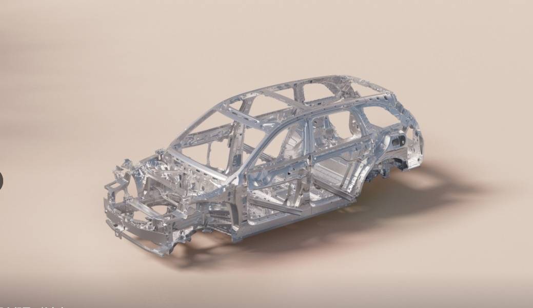 樂道L90采用全電子制動系統(tǒng),并對轉(zhuǎn)向助力機構(gòu)和主缸進行了空間壓縮,傳統(tǒng)方向盤—轉(zhuǎn)向柱—轉(zhuǎn)向器的直線路徑不再成為空間障礙。車身前部作為碰撞吸能區(qū),必須在結(jié)構(gòu)簡化與安全性之間找到平衡。樂道L90使用了多種材料混合工藝,前艙高強度鋼和鋁合金占比超過92%,前艙后部采用6系鋁合金打造的三角結(jié)構(gòu),加上2000Mpa的底部橫梁。