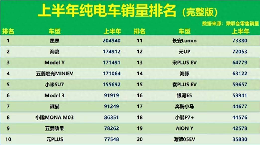 近期各款車(chē)型上半年的銷(xiāo)售數(shù)據(jù)陸續(xù)出爐,純電車(chē)上半年的銷(xiāo)量排行榜終于亮相,從前十名車(chē)型的表現(xiàn)來(lái)看,國(guó)內(nèi)市場(chǎng)繼續(xù)呈現(xiàn)出多極化競(jìng)爭(zhēng)格局,前十名車(chē)型中既包含了微型代步車(chē),也覆蓋了中高端智能車(chē)型,這也反映出消費(fèi)者需求分層與技術(shù)迭代的雙重驅(qū)動(dòng)。接下來(lái)我們就來(lái)看看這些車(chē)型的表現(xiàn)吧。