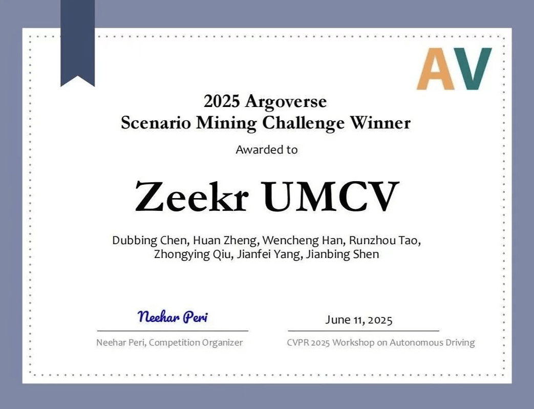 在被譽為“自動駕駛算法奧林匹克”的CVPR研討會上,吉利千里浩瀚智駕團隊在Argoverse2 2025場景挖掘挑戰賽中擊敗一眾全球頂尖車企及研究團隊,斬獲世界冠軍。據了解,該賽事要求參賽模型在海量非結構化數據中識別關鍵駕駛事件,難度猶如海底撈針,而吉利千里浩瀚所采用的智能駕駛AI模型,在同數據量中可獲得更優學習成果,這意味著,它在實際應用中具備更強端到端系統在關鍵駕駛場景的識別和處理能力。