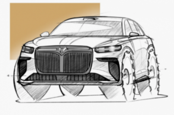 通過“泰山”的手繪效果圖來看,這款大型SUV其實延續了自身的東方美學特征。比如嵐圖標志性的直瀑式前臉格柵,就能呈現出很有內涵的效果。
