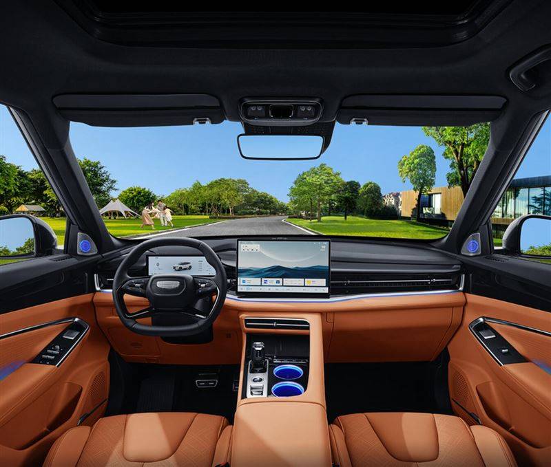 車內(nèi)設(shè)計(jì)也有點(diǎn)“越野的味道”,但科技裝備并沒有缺席,大尺寸懸浮式中控屏被安排到位,內(nèi)置高通驍龍8155芯片,智能裝備不落后。