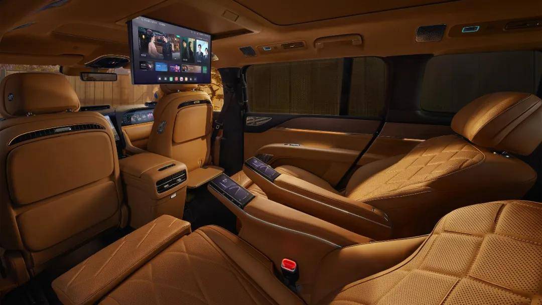新車采用2+2+2的六座布局,擁有2755mm的超長縱向空間,打造出5.3m³的寬奢座艙。雙排行政級零重力座椅配備18點按摩功能和頭枕音響系統(tǒng),第三排座椅也配備了加熱功能和電動調(diào)節(jié),確保每位乘客都能享受尊貴的乘坐體驗。