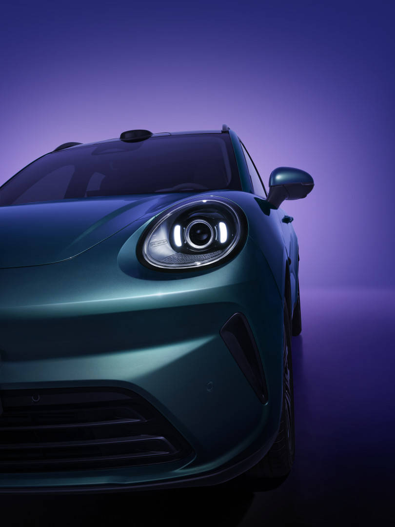 歐拉5的輪軸比達到2.74,與經典豪華車型保時捷Macan的2.75驚人地接近。前大燈的設計靈感,來自于水滴懸于葉尖、將墜未墜的剎那。其內部采用了旗艦級LED燈珠與D60高性能透鏡,可實現170米外的遠光清晰照射。