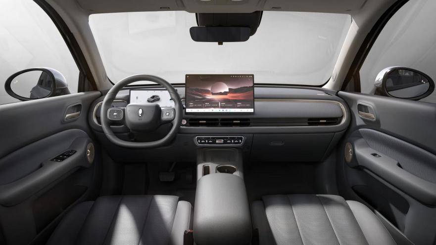 歐拉5的座艙通過簡約克制的布局,為用戶營造出一個舒展、通透的內在空間。中控采用液晶儀表+懸浮式大屏的設計,下方為實體按鍵的空調控制區域。方向盤是D字造型,有一定的運動感。方向盤右側是懷擋式的換擋桿。扶手箱前側配備單手機無線快充面板。